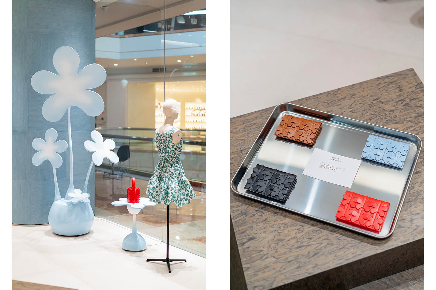Designed in collaboration with the architectural studio GondoJules, the striking space is rooted in PEGGY HARTANTO’s ethos of elegance and precision, as evident in the strong, structured architectural lines juxtaposed with organic shapes. The interior features a contrasting palette of dark brown and powder blue accentuated with chrome surfaces and structured clay walls.