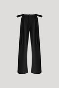 These chic and adaptable trousers are available in a deep teal shade, boasting an elegant and distinctive appearance. They sport a timeless bootcut style at the hem and include a set of adjustable waist sashes to infuse a hint of timeless sophistication into your ensemble.