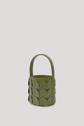 Cow nappa leather bucket bag adorned with PEGGY HARTANTO's signature leaf appliqués.