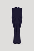 Sleeveless draped midi dress.