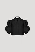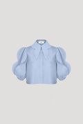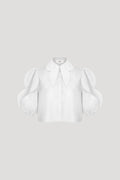 Cropped shirt with a pointed collar and scalloped puff sleeves