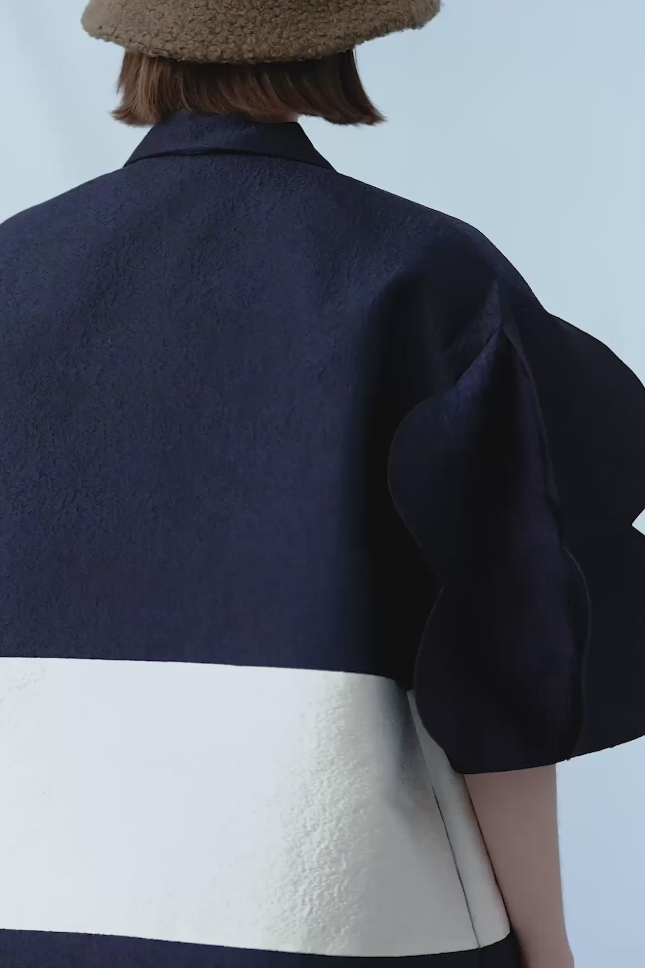 Textured striped coat with scalloped puff sleeves