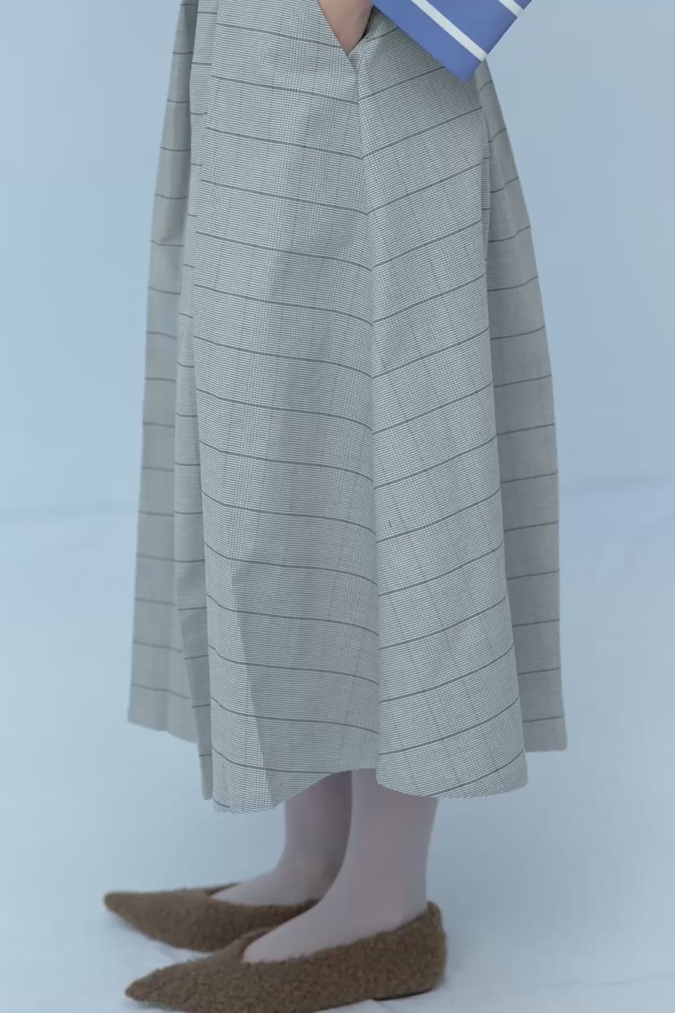 High waist plaid A-line midi skirt