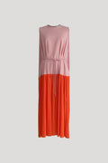 Two-Toned Pleats Detailing Tiered Dress with Detachable Belt