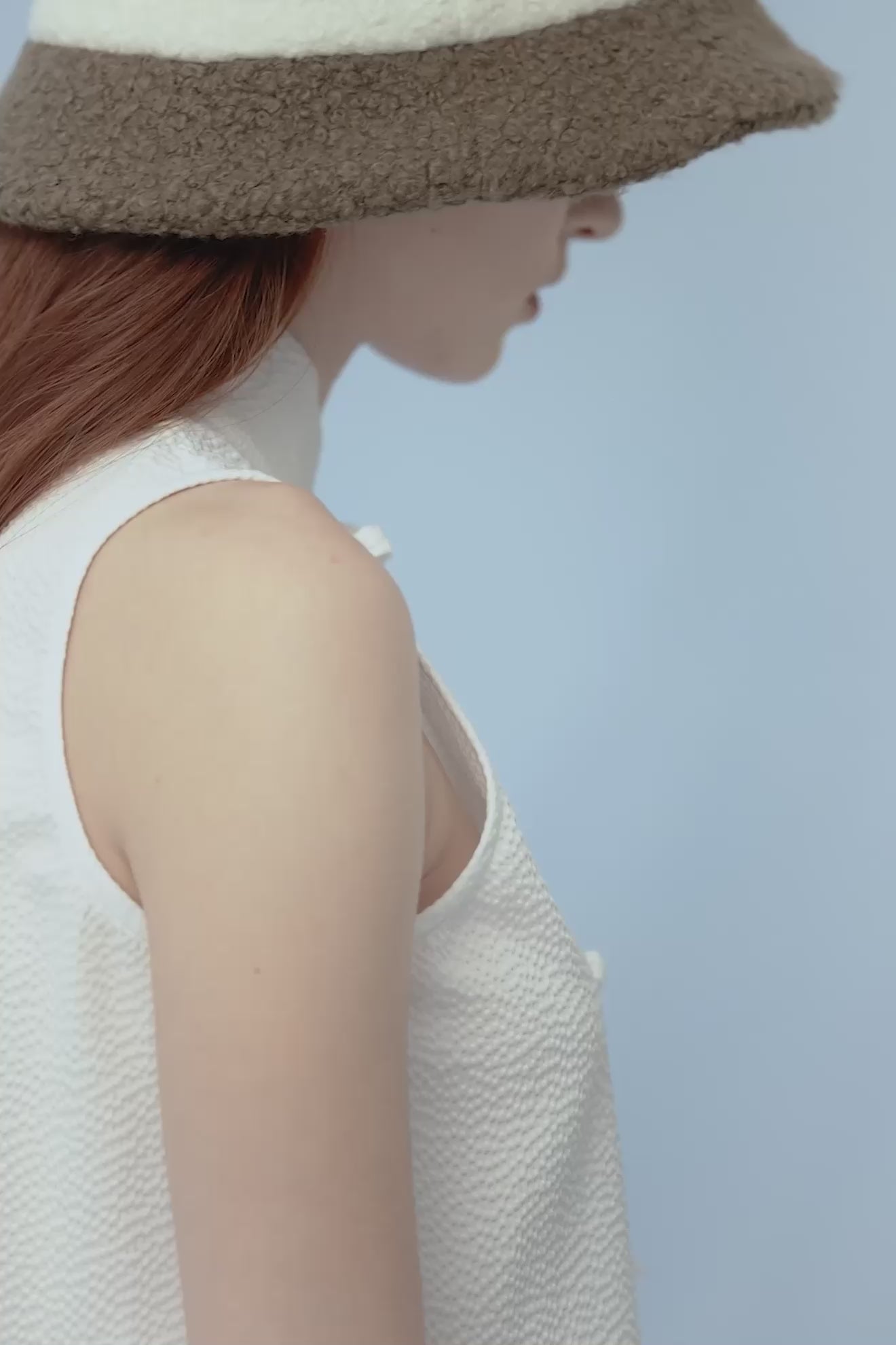 Sleeveless seersucker top with frog knot closures
