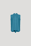 Sleeveless cotton-blend shirt with curve-detailed collar.