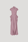 Mandarin collar sleeveless dress with peplum accents and flowing hem